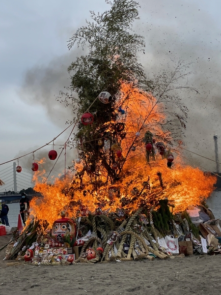 正月飾りや書き初め、願い事を書いた短冊などを焚き、一年の無病息災を祈願します。