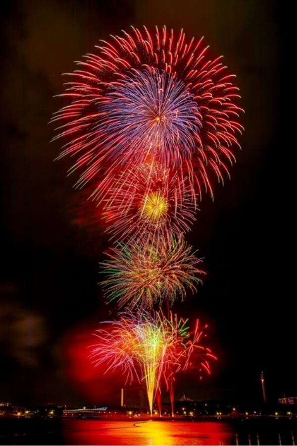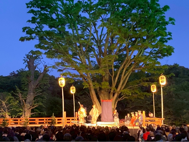 一気に燃え上がる7mの斎灯(さいと)は迫力満点!お団子焼きや獅子舞、大抽選会もあり、地域の人々が集う温かな伝統行事です。