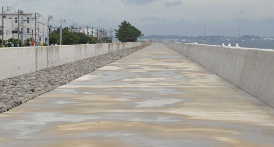 2019年9月8日夜から9日明け方にかけ関東地方を通過した台風15号は、区内の産業団地「LINKAI横浜金沢」に甚大な被害をもたらしました。想定を超えた高波により、海岸線に近い企業ほど大きな被害を受けたほか、分厚いコンクリートの護岸も一部倒壊しました。罹災した企業の中には、再建をあきらめたところも。想定を超える台風の猛威でしたが、復旧する護岸の設計の考え方として「今後発生し得る最大の高潮・高波を防護できるもの」としたため、海の見える風景が無くなってしまいました。